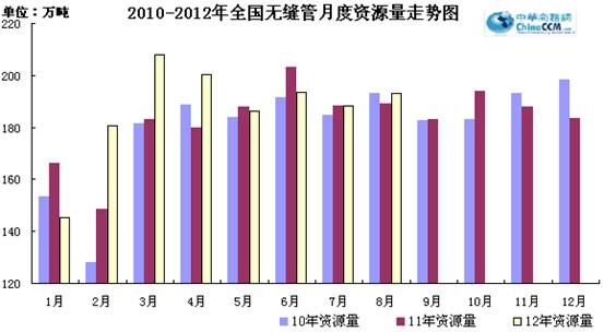 8月份國內生產無縫管234萬噸,同比微降0.2%。環比7月份增加0.4萬噸,環比增長0.17%。2012年1-8月份累計生產無縫管1805.2萬噸,同比增長6.6%。