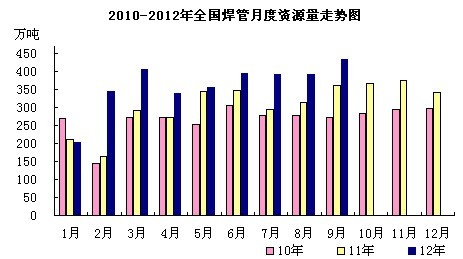 由于管廠擺脫虧損困境加大生產力度,導致國內焊管產量大幅攀升,而出口數量有限,對于國內高產量來講顯得杯水車薪,從而國內表觀消費量出現大幅增加。預計受十月份國內鋼價走穩,管廠受利潤增加,開工率仍然居高不下,十月份焊管表觀消費量將繼續保持在該水平上下運行。