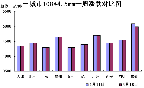 西北地區無縫管市場價格平穩運行,其中西安108*4.5市場價格4450元/噸。無縫管出廠價格以穩為主,市場觀望情緒濃重,短期內無縫管市場價格調整的可能性不大。