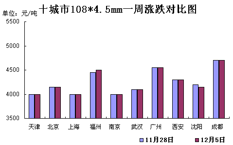 西北地區無縫管市場價格弱穩,其中西安108*4.5市場價格4300元/噸。因市場成交低迷,價格調整意義不大,他們多暫穩操作,觀望行情。