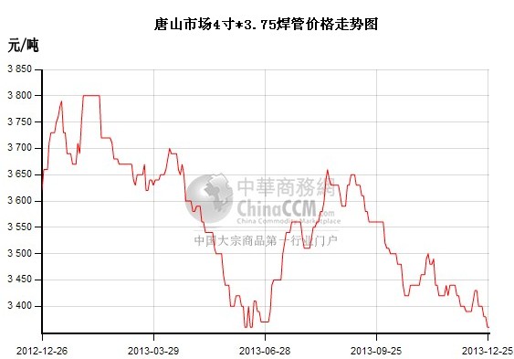 據中華商務網監測數據顯示,截止12月26日,國內十城市1.5寸國標焊管均價3660元/噸,較上期跌8元/噸;4寸國標焊管均價3648元/噸,較上期跌8元/噸;8寸國標焊管均價3791元/噸,較上期跌8元/噸。