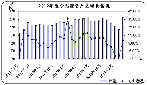 2014年3月份無縫管產量283.3萬噸,同比增長8.5%。2014年1-3月份累計生產無縫管719.1萬噸,同比增長4.2%。2014年1-3月份無縫管產量排名前十位的地區依次為:山東、江蘇、天津、河南、湖南、內蒙、浙江、湖北、四川和遼寧,其中25個無縫管主產區中有九個地區同比減產,天津減產最大,減產量10.3萬噸,同比下降12.1%;山東增產最大,同比增產36.4萬噸,同比增長26.2%。