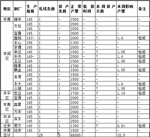 中商網訊:本周唐山21家鋼廠共25條145mm帶鋼線,其中16條帶鋼線生產正常,9條檢修,影響產量10.5萬噸;開工率64%,較上周增加4%。