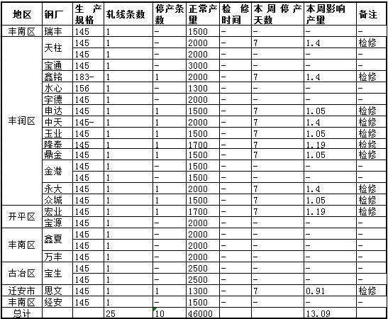 中商網訊:本周唐山21家145帶鋼廠25條帶鋼線中,10條檢修或停產,影響產量13.09萬噸,產能利用率為59.3%,較上周持平;15條帶鋼線正常生產,開工率為60%,較上周持平。