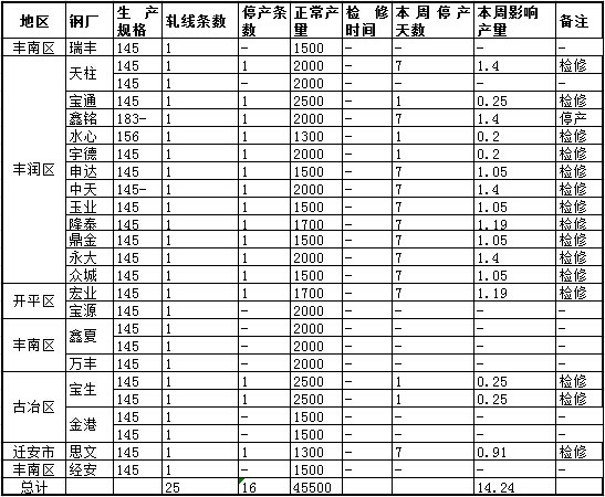 中商網訊:本周唐山21家145帶鋼廠25條帶鋼線中,16條檢修或停產,影響產量14.24萬噸,產能利用率為55.8%,較上周下降3.5%;9條帶鋼線正常生產,開工率為36%,較上周下降24%。