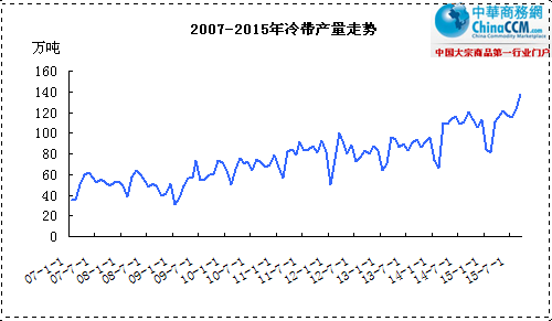 據(jù)統(tǒng)計局?jǐn)?shù)據(jù)顯示,2015年9月份我國冷軋窄鋼帶產(chǎn)量137.72萬噸,同比增產(chǎn)17.21萬噸,同比增長14.29%。環(huán)比增產(chǎn)15.04萬噸,環(huán)比增長12.26%。2015年1-9月份累計產(chǎn)量1013.90萬噸,比去年同期累計增加72.82萬噸,同比增長7.74%。