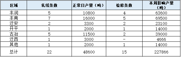 中商網訊:本周唐山18家145帶鋼廠22條帶鋼線中,15條檢修或停產,影響產量22.79萬噸,產能利用率為33.02%,較上周上漲1.76%,7條帶鋼線正常生產,開工率為31.82%,較上周上漲4.55%。