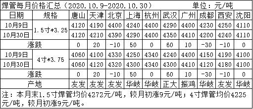 焊管每月價格匯總(2020.11.2-2020.11.30)