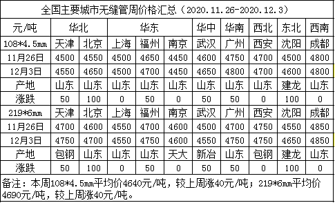 無縫管周價格匯總(2020.11.19-2020.11.26)