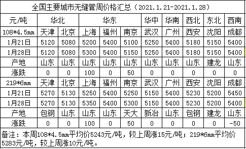 無縫管周價格匯總(2021.1.14-2021.1.21)