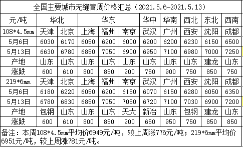 無縫管周價(jià)格匯總(2021.4.29-2021.5.6)