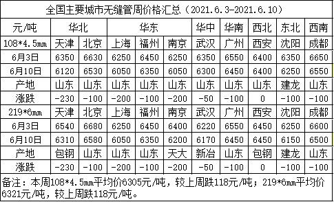 無縫管周價格匯總(2021.5.27-2021.6.3)
