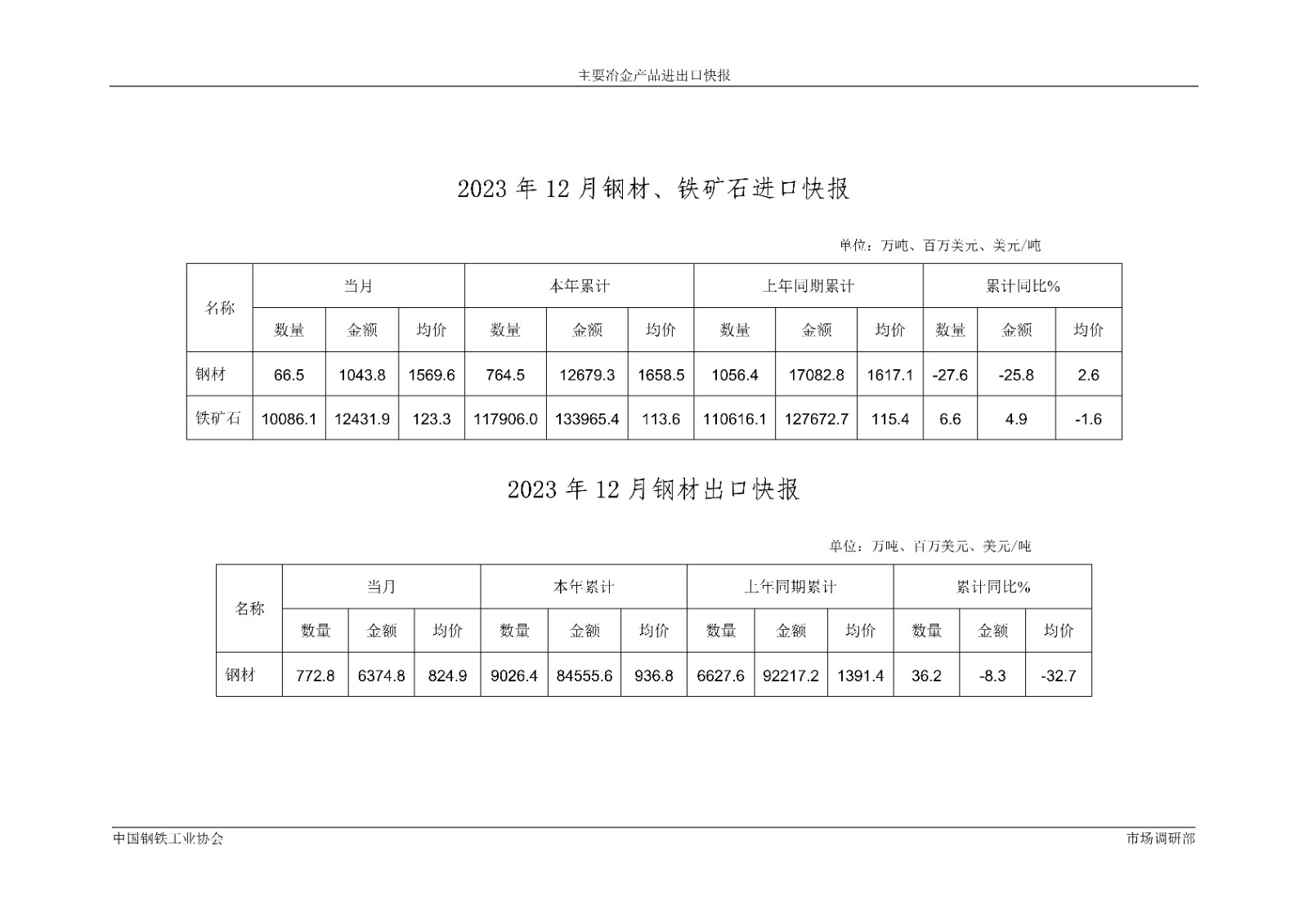 2024年1月上旬重點統計鋼鐵企業產存情況