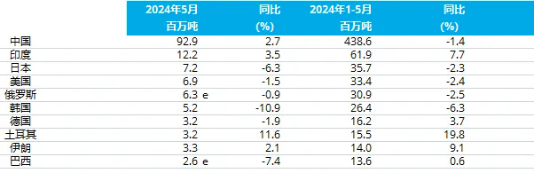 2024年5月全球粗鋼產量
