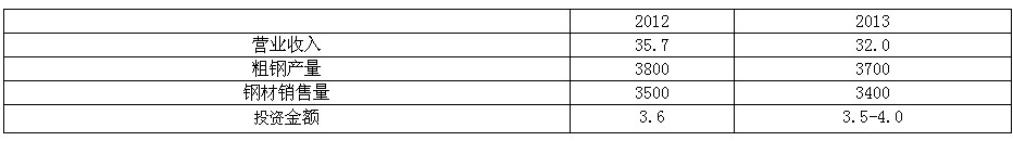 表2 2013年浦項鋼鐵生產經營目標萬億韓元,萬t