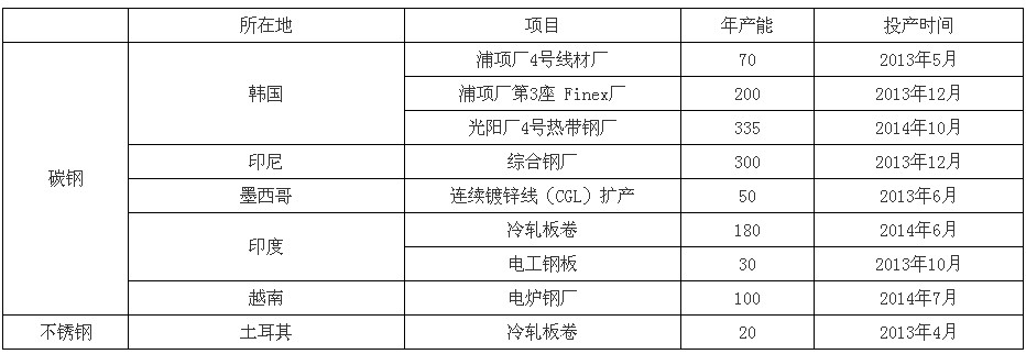 隨著越南電爐鋼廠建成投產,到2015年,浦項計劃將其全球粗鋼年產能將由2013年的4700萬t進一步提升至4800萬t。其中韓國國內為4300萬t,包括浦項廠1700萬t,光陽廠2500萬t,昌原廠100萬t;韓國以外的亞洲地區為500萬t,包括印尼300萬t,中國100萬t,越南100萬t。
