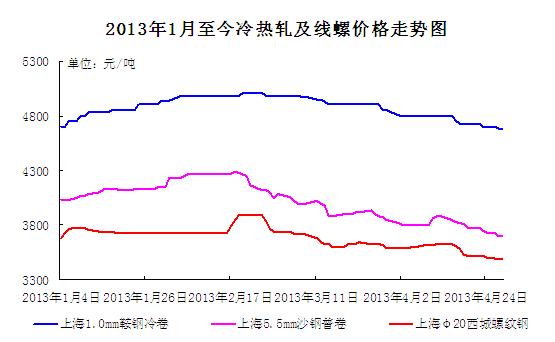圖一:2013年1月至今冷熱軋及線螺價格走勢圖