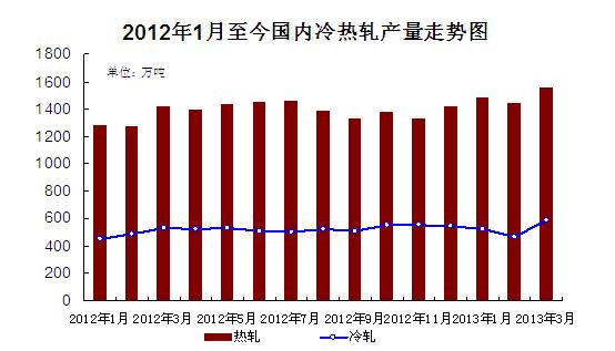 圖二:2012年1月至今國內冷熱軋產量走勢圖
