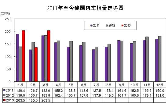 對于冷軋板卷市場的下游市場來說,汽車和家電產品占據了主導地位。進入2013年以來,我國汽車產銷呈現步抬升的良好形勢。據中國汽車工業協會數據顯示,2013年3月,我國汽車產銷雙雙超過200萬輛,創歷史新高。1-3月,汽車產銷同比增長均超過10%。3月份汽車生產208.52萬輛,環比增長54.76%,同比增長10.88%;銷售203.51萬輛,環比增長50.22%,同比增長10.69%。1-3月,汽車產銷539.71萬輛和542.45萬輛,同比增長12.81%和13.18%,增幅較前2月略有減緩。其中乘用車產銷438.32萬輛和442.31萬輛,同比增長16.23%和17.21%,增幅依舊明顯高于全行業;商用車產銷101.39萬輛和100.14萬輛,產量同比增長0.08%,銷量下降1.72%,商用車產量已經走出了下降趨勢,銷量降幅進一步轉緩。汽車產銷雙旺的勢頭也極大提振了冷軋市場的信心,加快了市場資源的消耗。