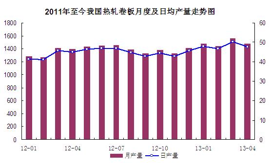 在國內熱軋卷板市場價格跌情難止的情況下部分鋼廠先后開展檢修工作,以遏制產量的進一步推高。也正因為此,在3月產量創下歷史新高之后,4月份國內熱軋卷板產量出現了較為明顯的回落,當月產量合計1477.1萬噸,環比上月減產85.3萬噸,但仍牢牢占據歷史產量的季軍寶座。不過根據中鋼協最新數據顯示,5月上旬和中旬其會員企業粗鋼日產量分別為174.8萬噸和174.05萬噸,全國估算值為219.29萬噸和218.54萬噸,其中中旬粗鋼日產量再創同口徑歷史新高,這也在較大程度上傳遞出產量居高難降的信號。在鋼廠方面并沒有實質性減產動作之前,國內熱軋卷板產量仍處維持較高的水平,因此指望產量回落減緩市場供應壓力的可能性微乎其微。