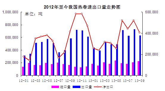 9月份我國熱軋卷板呈現(xiàn)“出口降進口增”的局面。出口方面,當月熱卷出口63.27萬噸,環(huán)比減少9.47萬噸;日均出口2.11萬噸,環(huán)比微降0.24萬噸。主力軍中厚寬鋼帶出口61.74萬噸,環(huán)比減少8.9萬噸。進口方面,當月熱卷進口量為22.77萬噸,環(huán)比增2.19萬噸。中厚寬鋼帶及熱軋薄寬鋼帶進口量分別為13.71萬噸和7.09萬噸,環(huán)比增量為2.7萬噸和0.33萬噸。
