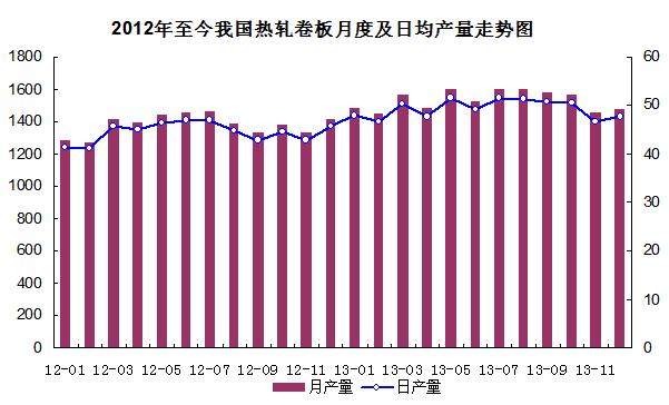 12月熱卷產量小幅上揚,當月產量合計1474.1萬噸,環比上月增加26.1萬噸。分品種來看,中厚寬鋼帶及熱軋薄板產量分別為928萬噸和66.3萬噸,環比均呈現回落勢頭,其中熱軋薄板單月降幅超過14.4萬噸。熱軋薄寬鋼帶產量為479.8萬噸,環比增產46萬噸。2013年全年,我國熱軋卷板產量合計18331.94萬噸,較去年同期增加1771.84萬噸,同比增幅達10.7%。
