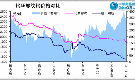 10月底鋼坯毫不猶豫的跌破1600元,今日坯料價格觸摸1540元,創歷史新低。近日鋼坯陰跌有股勢如破竹姿態,雖然跌幅不大,但下跌勢頭不止,不像往期在漲漲跌跌中跌跌撞撞中前行,鋼廠雖有挺市意愿但無奈成交受阻。而鐵礦石市場跌勢不改,外盤下跌2美金左右,港口現貨下跌15元左右,PB粉成交價格達到350-355,塊礦價格下滑幅度依然較大,PB塊只要380元/噸便能成交。而國內焦炭價格也延續下行,河北地區部分焦企遭遇鋼廠強行壓價,雖然鋼廠普遍無過高焦炭庫存,但是打壓原材料的高壓態勢不改。在鋼材成品價格持續下行的大潮中,不斷打壓原材料價格、盡力降低生產成本成為鋼廠的普遍共識。受累于此,近日熱卷價格大幅走低,其中天津市場熱軋厚卷已經下跌至1700元/噸的歷史低點,上海市場在1900元/噸震蕩盤桓一個多月后,亦出現下跌行情。最低報1860/噸,較上周降40元/噸。寒冬才剛剛降臨,在鋼企虧損加劇的行當,后期只能靠減產、限產來自救。對于后期鋼材價格而言,這個冬季熱卷跌破1700元、鋼坯跌破1500元不是沒有可能。