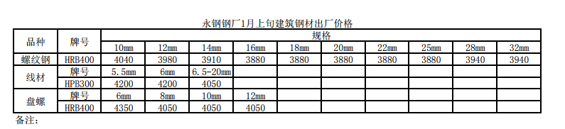 (關(guān)鍵字:永鋼鋼廠1月上旬建筑鋼材出廠價格)