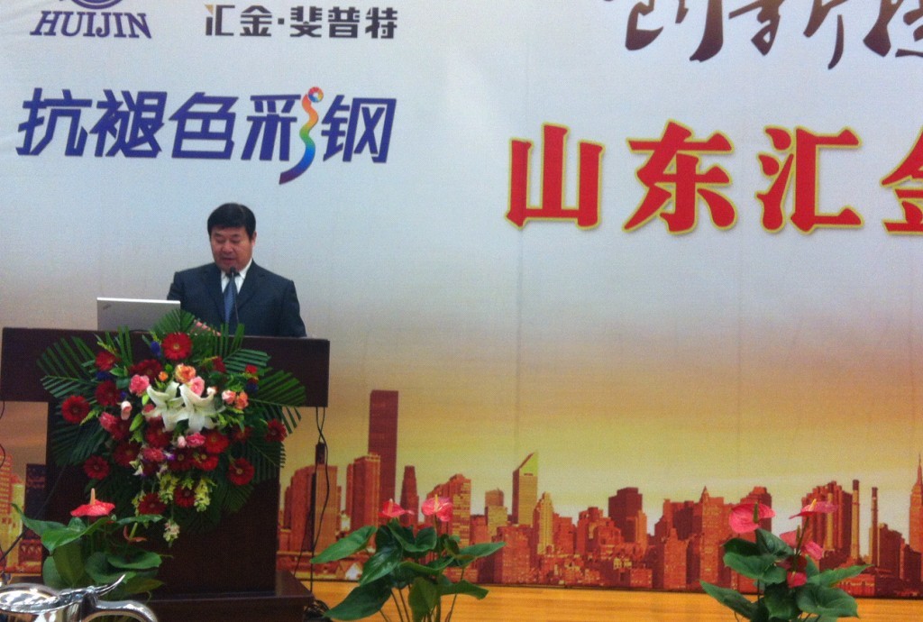 會(huì)議由山東匯金董事長(zhǎng)魏龍昌致開幕詞,魏總對(duì)于各位嘉賓百忙之中的到來,表示了熱烈的歡迎。魏總表示,面對(duì)經(jīng)濟(jì)下滑,市場(chǎng)競(jìng)爭(zhēng)激烈、產(chǎn)品同質(zhì)化嚴(yán)重的局面,山東匯金圍繞戰(zhàn)略目標(biāo)落實(shí)“品質(zhì)帶動(dòng)產(chǎn)業(yè),服務(wù)爭(zhēng)取空間”的工作思路,實(shí)施管理創(chuàng)新、品質(zhì)提升,廣交朋友、深度合作的措施。截止11月初,完成國(guó)內(nèi)貿(mào)易增長(zhǎng)23%,國(guó)際貿(mào)易增長(zhǎng)了70%任務(wù)目標(biāo)。贏得了世界500強(qiáng)、全球最大的涂料生產(chǎn)商—阿克蘇諾貝爾公司贊賞,達(dá)成戰(zhàn)略合作伙伴,共建了匯金-斐普特實(shí)驗(yàn)室,致力于研發(fā)、生產(chǎn)抗褪色高端彩鋼產(chǎn)品,并將新品牌定名為:匯金---斐普特。