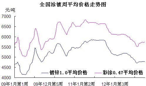 中商網(wǎng)訊:本周國(guó)內(nèi)涂鍍市場(chǎng)總體表現(xiàn)一般,價(jià)格穩(wěn)中盤整,隨著需求淡季進(jìn)一步深化,出貨情況日益下滑。其中以博興、華北市場(chǎng)表現(xiàn)明顯,東北市場(chǎng)連降大雪,需求基本停止,造成華北與博興市場(chǎng)的成交受限。截止本周末,1.0mm規(guī)格鍍鋅均價(jià)4791元/噸,相比上周的4790元/噸,上漲1元/噸;0.47mm規(guī)格彩涂均價(jià)5724元/噸,相比上周的5731元/噸,下跌7元/噸。