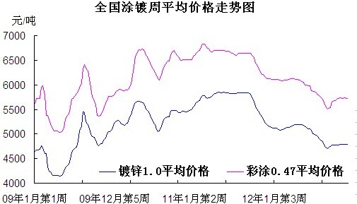 中商網(wǎng)訊:本周國內(nèi)涂鍍市場依舊無喜人的表現(xiàn),隨著天氣越發(fā)寒冷,商家出貨量進一步寡淡。市場心態(tài)悲觀,觀望氛圍濃郁。截止本周末,本周1.0mm規(guī)格鍍鋅均價4791元/噸,相比上周的4791元/噸,持平;0.47mm規(guī)格彩涂均價5719元/噸,相比上周的5724元/噸,下跌5元/噸。
