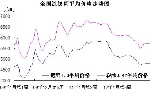 各鋼廠2013年一月出廠價格穩(wěn)中小幅調(diào)漲,此外電子盤走高的帶動下,熱卷強(qiáng)勢上揚(yáng)后持續(xù)高位運行,使得下游軋機(jī)企業(yè)操作更難,迫于壓力跟漲。然而當(dāng)前需求低迷,出貨情況慘淡。涂鍍成品價格單靠成本的推動難以持續(xù)性的上漲,預(yù)計元旦后國內(nèi)涂鍍市場走勢難現(xiàn)喜人表現(xiàn)。
