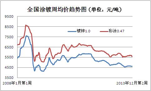 11月國內涂鍍市場延續10月份盤整走勢,價格上漲缺乏動力,而大幅下調報價促成交的意愿又小。鍍鋅方面,彩基板價格呈弱勢盤整態勢,降幅僅10-20元/噸,因下游需求力度萎縮,市場競爭壓力偏大,目前同規格產品廠家之間價差愈來愈小。厚規格鍍鋅報價雖穩,但成交仍異常清淡。上海市場本鋼、馬鋼等資源緊缺,商家出貨無讓利空間。彩涂方面,受天氣影響,彩涂市場呈南強北弱之態勢,北方低價彩涂資源不斷涌現,且成交十分困難。華東、華南報價尚穩,多數廠家表示,需求淡季下下調報價也難改成交清淡的局面,因此力挺報價,另據了解目前外貿訂單略好于內銷。