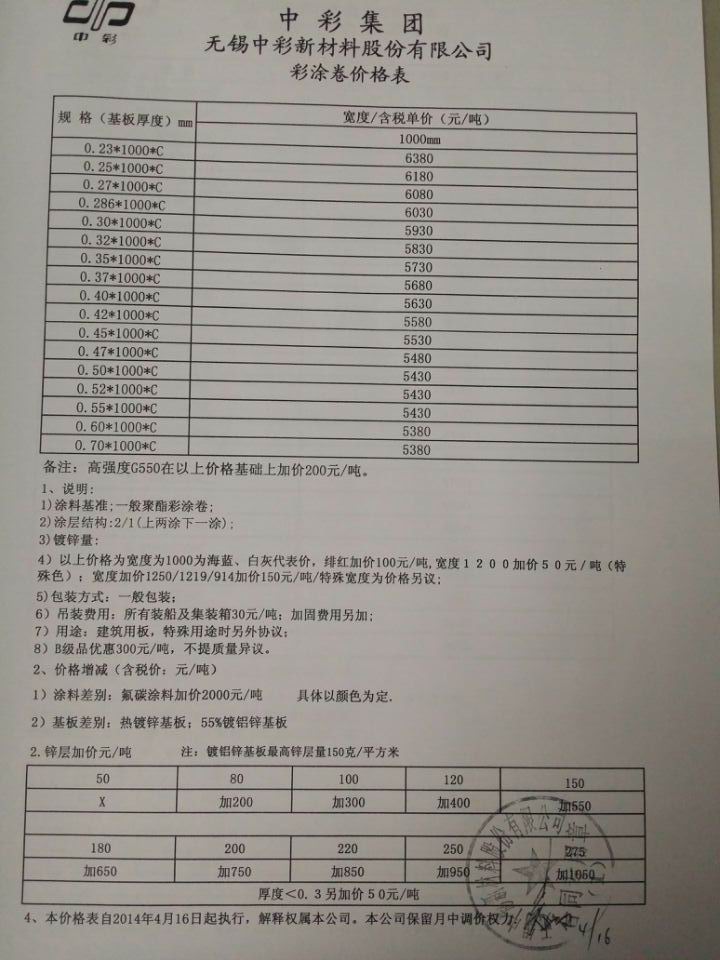 (關(guān)鍵字:無錫 中彩 彩涂?jī)r(jià)格表)