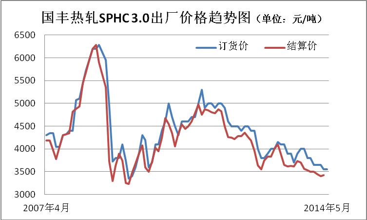 圖1:國豐SPHC 3.0mm訂貨價及結算價走勢圖