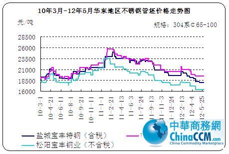 12年5月,五一小長假回來,市場看來需求沒有明顯的變化,價格沒有動力支撐,行情基本還是維持弱勢,多數商家表示今年經濟環境下仍難持樂觀態度,隨著成本的上升壓力漸增,早已進入微利潤時代,市場上觀望氣氛較濃,各商家都在等待行情好轉,商家庫存普遍還是處在低位,沒有大量補貨行為。月中,論鎳震蕩幅度不大,不銹鋼無縫管價格沒有波動。商家普遍反映近期生意難做,大多按照訂單進行生產,庫存有限,一般都不愿意囤貨,不敢大量投資,避免造成損失。不銹鋼無縫管各商家價格已經幾近觸底,但成交量和訂單并沒有回升跡象,轉眼即將進入本月下旬,國內外經濟環境不景氣,各鋼廠產能過剩,下游需求減少,已經成為近階段的難題。多數商家對上半年行情已經無言以對,對于下半年心態,要比市場預期減緩。商家應該做好了打持久戰的準備。月末,不銹鋼無縫管行情可謂是不動搖。行情乏善可陳,整月成交仍都不盡如人意,商家對后市無看好之望,更有商家對后市轉好表示需要時間甚長。即便是論鎳漲還是跌,都對價格沒有任何意義。不銹鋼無縫管行情靜在其中。目前,整體經濟環境不景氣下外部因素以利空居多,通脹壓力、原材料價格等因素逐步壓抑不銹鋼無縫管前行步伐。