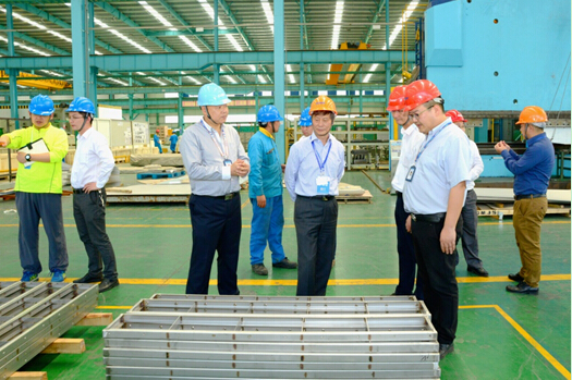 梁偉平總監一行首先觀看了宣傳片并聽取了大明鋼鐵材料和加工“一站式”服務體系的介紹,隨后參觀了江蘇大明加工中心和大明鈑金制造車間。蘇爾壽與大明在2016年建立聯系,2017年2月便簽下了材料合同重量是不銹鋼930噸、碳鋼460噸的加工訂單。梁偉平總監認為大明的深加工服務為蘇爾壽縮短了采購供應鏈,對保證項目工期和降低制造成本都非常有利,他希望未來與大明進行更深入、緊密的合作,為眾多客戶提供更好的服務,實現多方共贏。