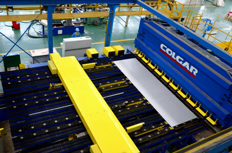 意大利COLGAR自動剪板中心,可剪切2.0mm—25mm的不銹鋼板,2.0mm—30mm的碳鋼板,成品最小板材尺寸1000 mm *500mm,最大板材尺寸6050 mm *2500mm, 可實現自動上料、自動翻板、自動剪切、自動堆垛等全自動一體化功能,批量生產。隨著該設備的調試和投產,將大幅度降低人工勞動強度,提高生產效率。(楊木軍攝)