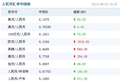 (關(guān)鍵字:人民幣匯率 中間價(jià))