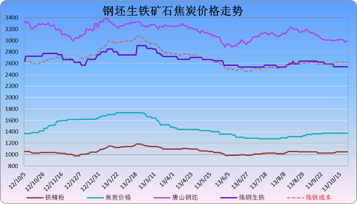 圖.2012年-2013年10月煉鋼生鐵成本分析走勢