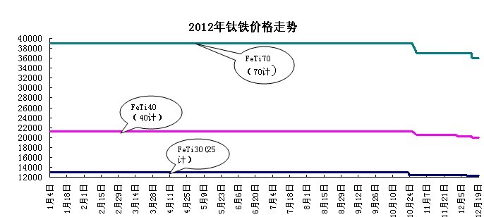 2012年鈦鐵平穩(wěn)走勢,高中低鈦鐵的價格整年來看,都比較穩(wěn),價格未出現(xiàn)明顯變化,除高鈦鐵受原料鈦精礦與金紅石和廢鈦的價格有些外,中低鈦鐵的價格上揚(yáng)幅度并不明顯。本年鋼材行業(yè)一直低迷運(yùn)行,鈦鐵的需求始終不明顯,好在鈦鐵整體庫存不大,所以市場波動并不明顯,十一之后,鋼廠采購又一次減弱,鈦鐵價格小幅度下走后,一直穩(wěn)定。