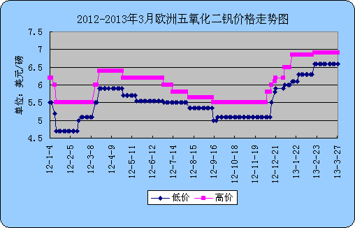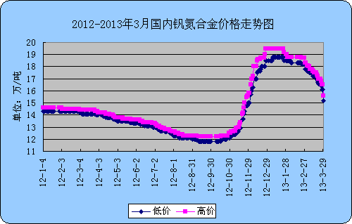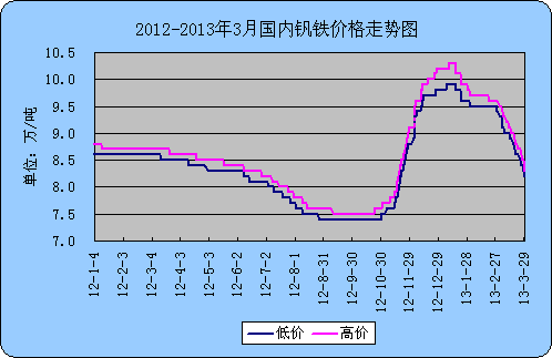 以下分別為2012-2013年3月國內外釩價走勢圖: