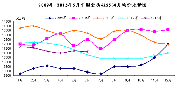 以553#金屬硅為例,截止25日,粗略估算本月553#金屬硅均價(jià)為11150元/噸,從上述圖中可以看出,價(jià)格遠(yuǎn)不如2010年及2011年,由于目前經(jīng)濟(jì)前景仍不樂觀,下游市場需求疲軟無法推動金屬硅價(jià)格走高,且豐水期開工增多,工廠競爭激烈,短期來看,價(jià)格將在10900-11100元/噸附近。