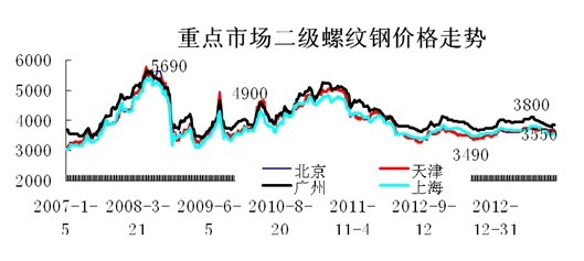 1、盡管國際金融債務危機繼續震蕩演繹,但是今年的形勢即不同于2008年的下半年價格短期震蕩大幅下跌。也不同于2011年中期以后的危機導致大宗商品市場再次恐慌。危機繼續演繹疲軟經濟條件下的資本市場價格博弈對世界雖然還會有震蕩風險。其實這正是金融危機常態化、長期化的市場表現形式。但是僅從國際市場看今年不具備演繹大宗商品價格上漲的通脹條件。也不具備前幾年推升全球通脹和金融危機導致經濟需求和市場價格周期性大漲大跌的特征。盡管國際反傾銷有增無減,但疊加在中國鋼材市場走勢中的國際金融危機市場變動因素已經減弱。對中國經濟市場的負面影響和困難已經介入一種波動不大的常態。因此,今年中國經濟和資源性商品市場走勢更多的取決于國內因素。