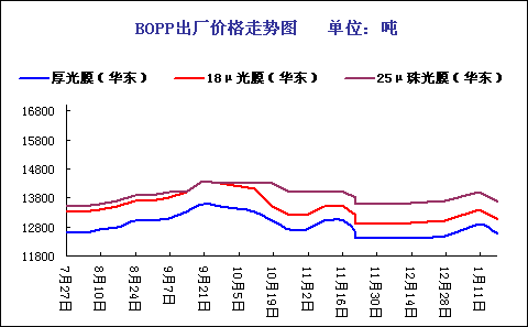 BOPP:1月第四周BOPP膜出廠價格走勢圖