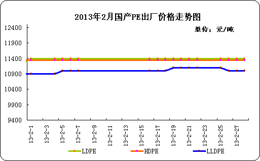 2月份因上游成本面走勢偏弱,且終端剛性需求面低迷乏力,各地PE市場難以擺脫震蕩陰跌態勢,3月恰縫“兩會”召開,市場期待利好消息提振,加上北方傳統農膜旺季即將來臨,預計3月PE市場震蕩盤整,需關注宏觀經濟。