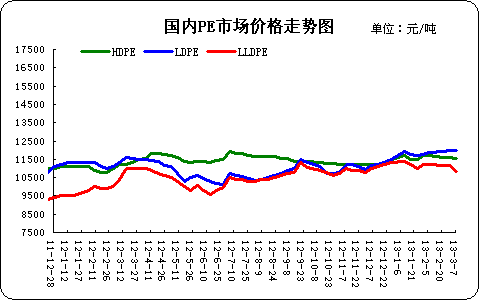 周初開盤,國際原油弱勢走跌,乙烯單體部分價格下挫,中石化部分大區調降出庫價,其中以高壓/線性為主,降幅多在100-200元/噸,中石油各大區出廠價走穩,各地PE市場商家報盤多為橫盤整理,周初場內慣性觀望情緒較濃,下游需求反應平淡,整體成交僵持。