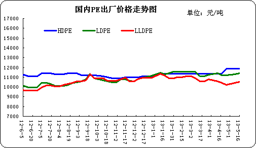 2013年5月第三周PE出廠價格走勢圖