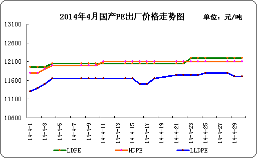 2014年4月國內PE出廠價格走勢圖