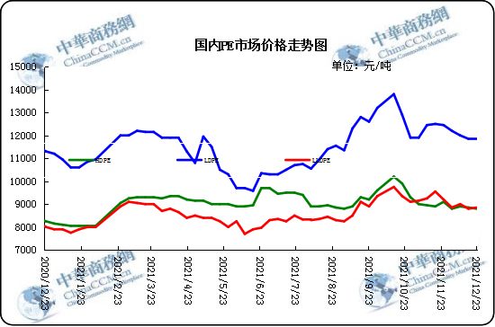 本周國內市場價格小幅調整,廠家有意穩定報價后漲價。市場接貨情況有一般,期貨影響現貨價格,各地倉庫維穩,交投總體情況一般。當前石化庫存小幅下降,對市場價格有一定影響,石化和貿易商價格隨市場期貨調整,實盤成交受價格影響觀望氣氛較重,市場價格呈回暖趨勢。多數石化銷售公司開單價格較穩,市場價格小幅調整為主,緩解場內交投氛圍,終端工廠對部分高價原料采購意向欠佳,近期部分地區出現疫情令市場避險情緒升溫,另外,進入12月中旬以后,北方降溫,而部分企業選擇控制資金風險,減少接單量,下游需求難有明顯提高整體利空因素較多。期貨市場開盤價格整體較上周呈上調趨勢,部分業者看空氣氛緩解。